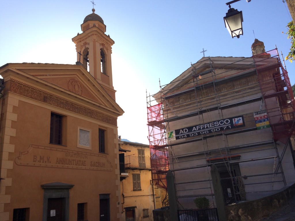 Superbe journée d’automne et passionnante recherche de décors à la Chapelle des Pénitents Noirs de Tende (classée Monument Historique), juxtaposant la Chapelle de l’Annonciation, un de nos anciens chantiers…une histoire de passion pour le patrimoine – bâti et naturel – qui poursuit son merveilleux chemin vers de nouveaux horizons de lumière…